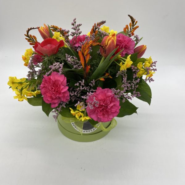 A delightful floral gift that combines beauty and convenience, as it doesn’t need to be unwrapped. Perfect for any occasion, this Colourful Hat Box is designed to brighten the day of anyone who receives it.